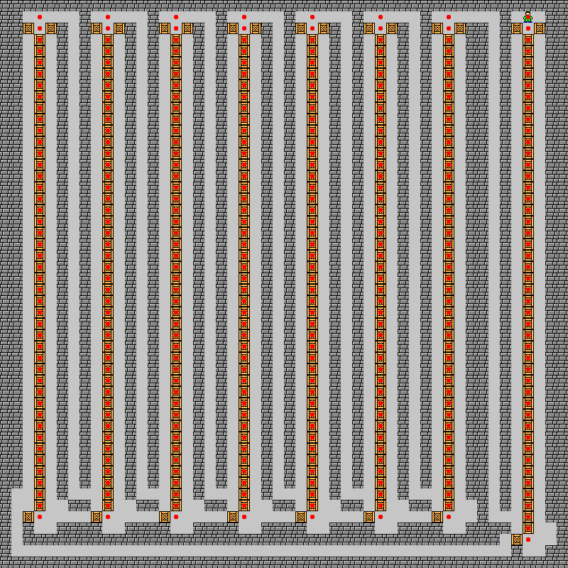 如果是横向简单复制,其移动步数只能算术级地增长,50×50的仓库内,倍数最多为9,即使在多余空位上做些变化,也是增长有限。但若初始关卡用这一关: